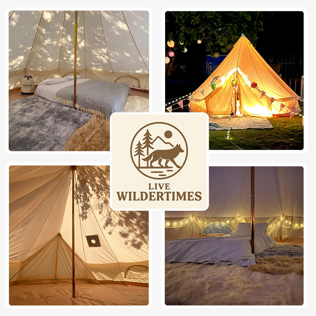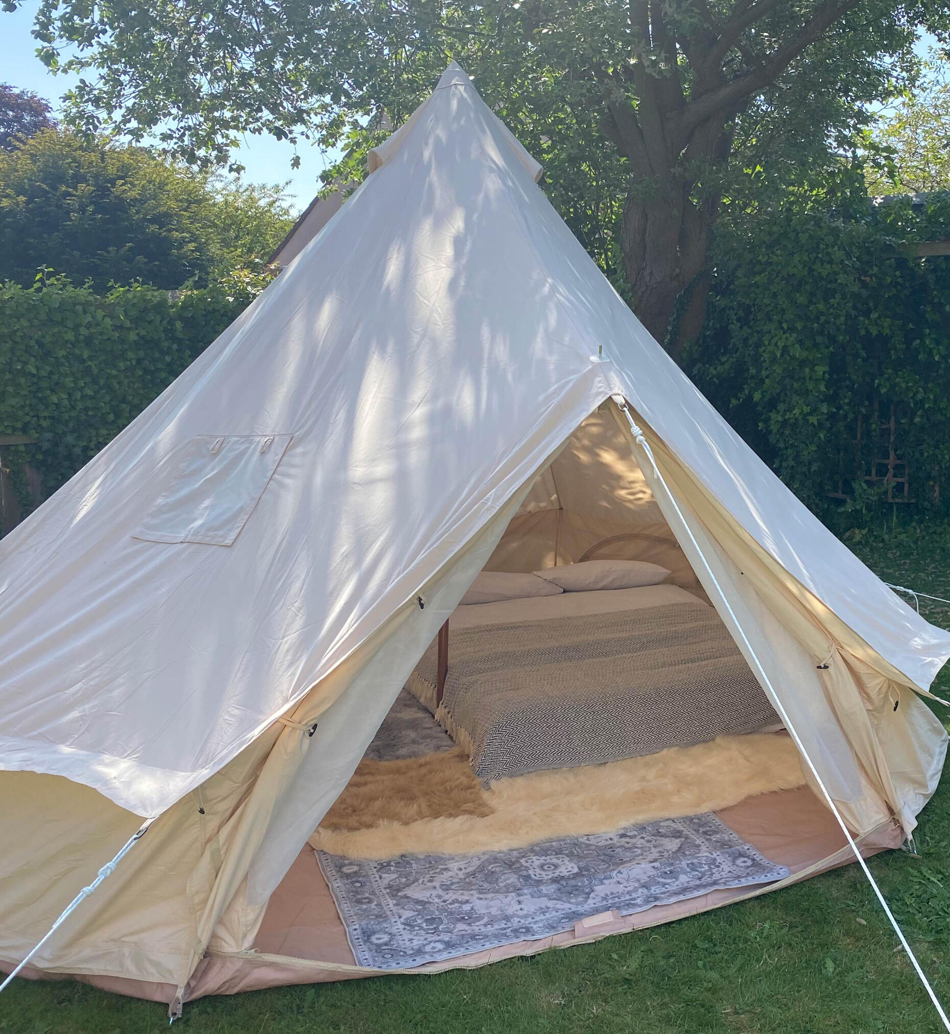 ⛺ A spacious 4m bell tent💡 Cozy extras such as soft floor rugs and failry lights🚚 Delivery & setup available